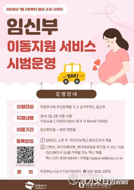 [경기핫타임뉴스=김형철 기자] 의정부시가 임신부의 이동 불편을 해소하고 안전한 외출을 지원하기 위해 2026년 1월 2일부터 ‘임신부 이동지원 서비스’를 시범운영한다.
