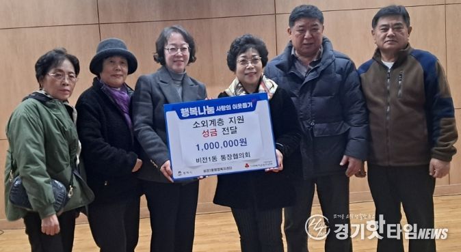 [경기핫타임뉴스=김삼영 기자] 평택시 비전1동 통장협의회는 지난 17일, 연말을 맞아 관내 어려운 이웃을 위해 써달라며 이웃돕기 성금 100만 원을 비전1동 행정복지센터에 기부했다.
