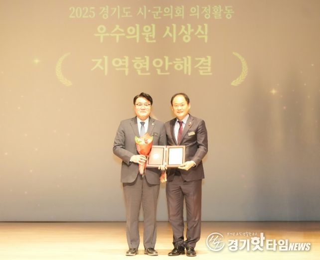 [경기핫타임뉴스=김형철 기자] 포천시의회 연제창 부의장이 24일 동두천시 시민회관에서 열린 2025년 경기도시·군의회 의정활동 우수의원 시상식에서 지역현안해결 분야 우수의원으로 선정되는 영예를 안았다.