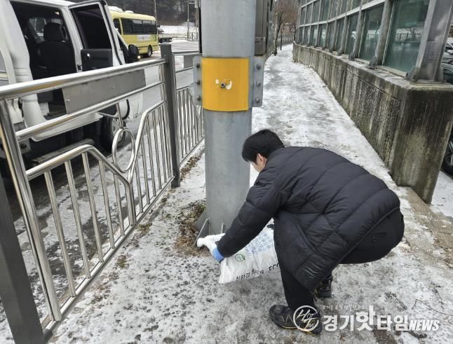 [경기핫타임뉴스=김형철 기자] 동두천시 생연1동 행정복지센터는 지난 24일, 겨울철 강설과 결빙으로 인한 주민 낙상 사고를 예방하기 위해 관내 상습 결빙 구간에 제설제를 비치했다고 밝혔다.