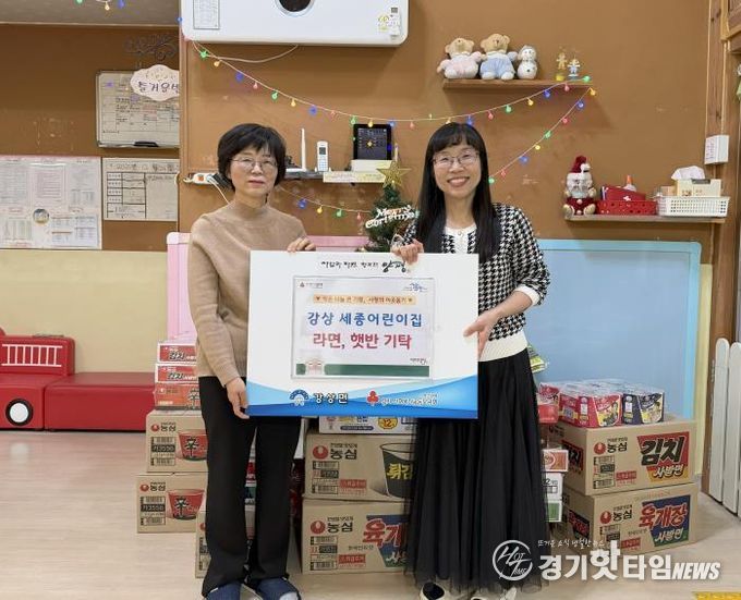 [경기핫타임뉴스=김형철 기자] 양평군 강상면은 지난 24일 강상면 병산리에 위치한 세종어린이집에서 라면과 즉석식품 등 이웃 돕기 후원 물품을 기탁했다고 밝혔다.