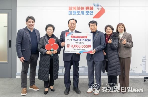 [경기핫타임뉴스=김삼영 기자] 오산시는 지난 24일 따스아리 기부천사로부터 저소득 취약계층 지원을 위한 후원금 300만 원을 기탁받았다고 밝혔다.