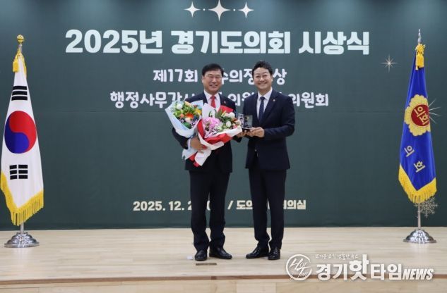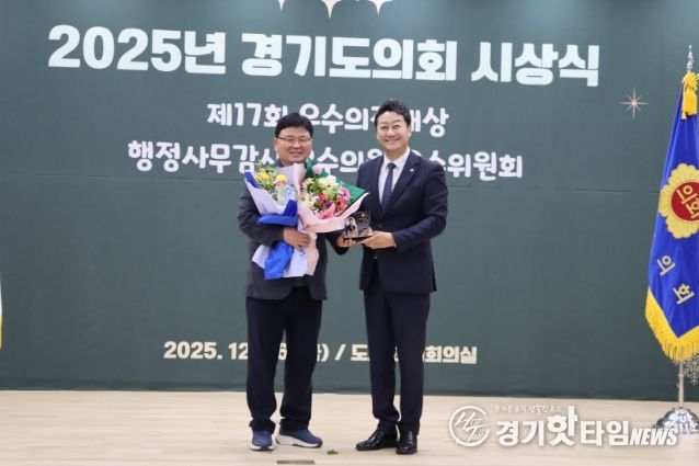 [경기핫타임뉴스=김삼영 기자] 경기도의회 교육기획위원회 이택수 의원(국민의힘, 고양8)과 성기황 의원(더불어민주당, 군포2)이 26일 열린 2025년 경기도의회 시상식에서 ‘2025년 행정사무감사 우수위원’으로 선정됐다.