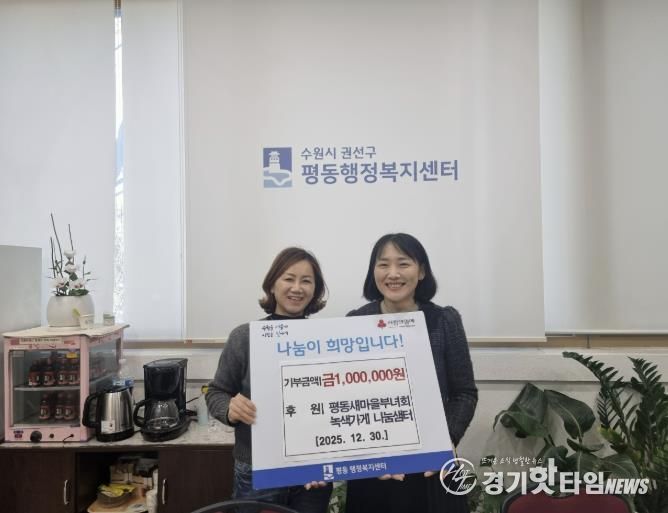 [경기핫타임뉴스=김삼영 기자] 지난 30일 수원시 평동 부녀회는 관내 어려운 이웃을 돕기 위해 녹색가게 운영을 통해 얻은 수익금 100만 원을 기부했다.