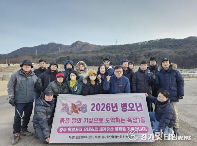 [경기핫타임뉴스=김형철 기자] 양주시 옥정1동이 2026년 병오년 새해를 맞아 양주회암사지 유네스코 등재를 기원하며 회암사지 일원에서 ‘2026년 옥정1동 해맞이 행사’를 개최했다.