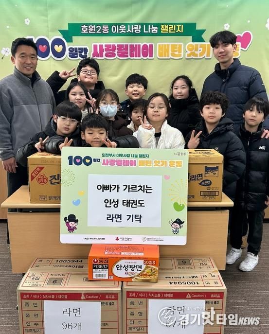 [경기핫타임뉴스=김형철 기자] 의정부시 호원2동주민센터는 12월 31일 아빠가 가르치는 인성태권도 수련생들이 정성을 모아 취약계층을 돕기 위한 라면 310개를 기탁했다고 전했다.
