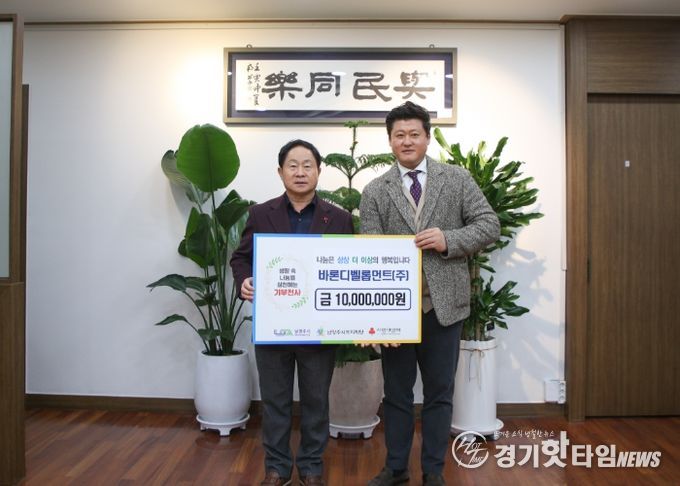 [경기핫타임뉴스=김형철 기자] 남양주시는 5일 바른디벨롭먼트 주식회사가 지역 내 취약계층 지원을 위해 후원금 1천만 원을 남양주시복지재단에 기탁했다고 밝혔다.