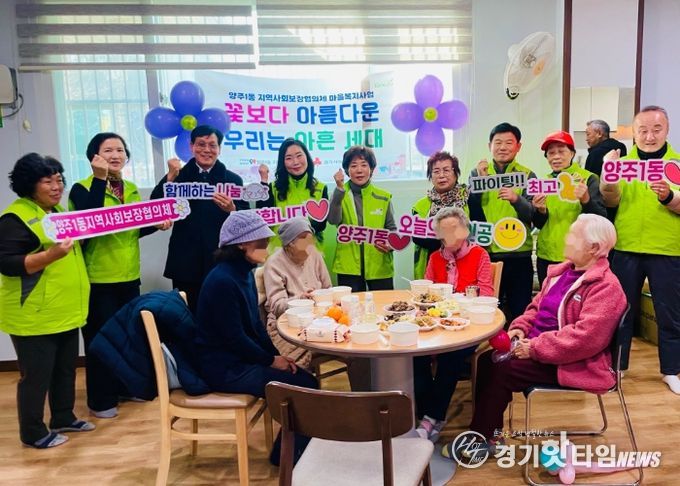 이번 사업은 2025년 양주1동 지역사회보장협의체 마을복지사업의 일환으로, 협의체 위원들이 어르신들을 경로당으로 초청해 직접 만든 소불고기와 잡채, 케이크 등 음식을 함께 나누며 어르신들의 장수와 건강을 기원하는 사업이다.