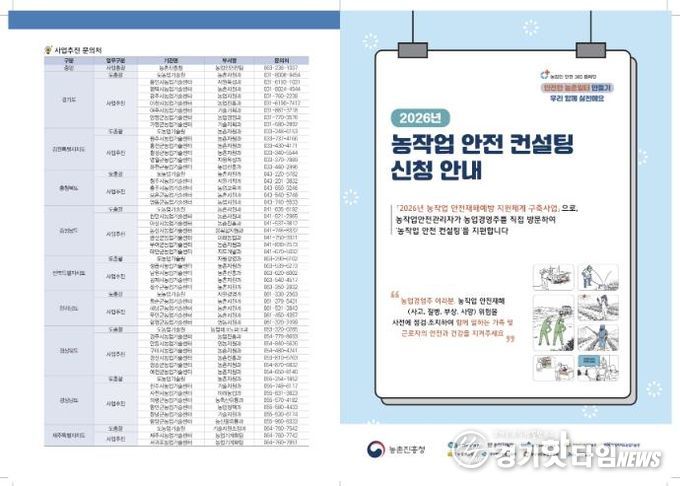 특히 올해는 중대재해처벌법 강화로 현장 대응의 중요성이 더욱 커짐에 따라, 상시근로자 5인 이상을 고용한 농업경영주를 중심으로 상담 대상 농가를 모집한다. 이를 통해 농업 현장에서의 법적 책임 이행은 물론, 실질적인 사고 예방과 안전 관리 수준 향상을 도모할 계획이다.