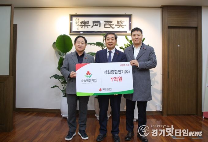 [경기핫타임뉴스=김형철 기자] 남양주시는 14일 삼화종합전기가 사회복지공동모금회의 고액 기부 프로그램인 ‘나눔명문기업’ 5호로 가입하고, 지역 내 취약계층 지원을 위해 1억 원 기부를 약정했다고 밝혔다.
