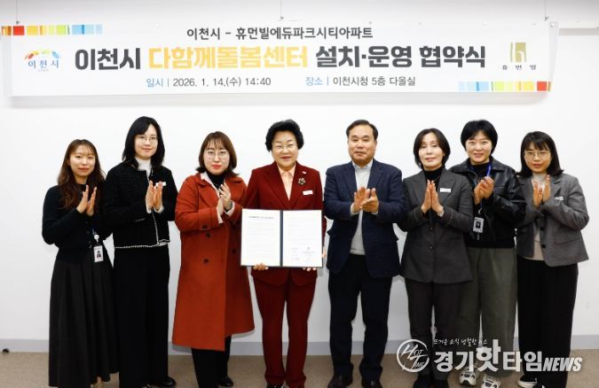 [경기핫타임뉴스=김형철 기자] 이천시는 지난 14일 시청에서 휴먼빌에듀파크시티아파트와 단지 내 ‘다함께돌봄센터 설치·운영을 위한 업무 협약’을 체결했다고 밝혔다. 이날 협약식에는 이도아 입주자 대표회의 회장을 비롯한 관계자들이 참석했다.