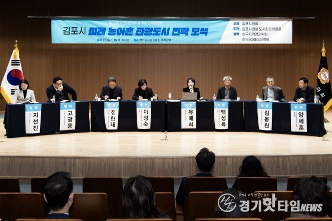 [경기핫타임뉴스=김형철 기자] 김포시의회는 1월 15일 오후 2시, 장기도서관 3층 다목적강당에서 ‘김포시 미래 농어촌 관광도시 전략 모색’을 주제로 '제20회 시민의견 청취를 위한 정책토론회'를 성황리에 개최했다. 이번 토론회에는 김포시의원을 비롯해 학계 및 연구자, 농어촌 관계자 등 약 200여 명이 참석해 높은 관심을 보였다.