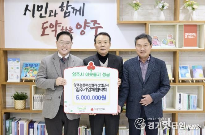 [경기핫타임뉴스=김형철 기자] 양주시가 지난 15일 시장실에서 양주검준패션칼라사업협동조합을 비롯한 관련 단체 및 기업으로부터 이웃돕기 성금과 성품을 기탁받았다고 밝혔다.