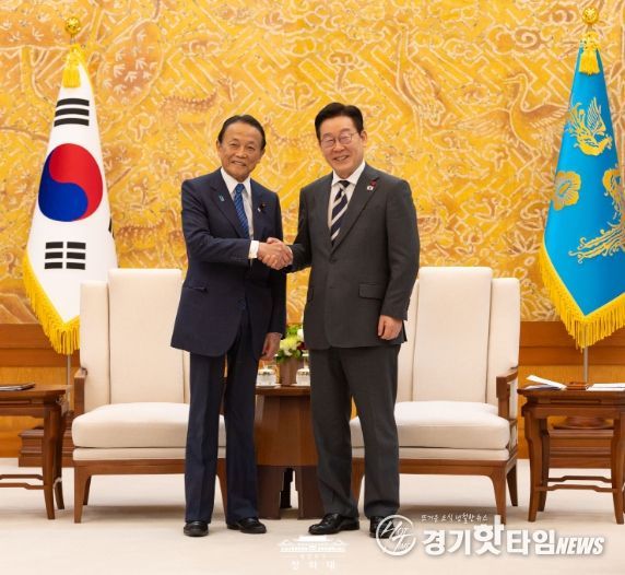 [경기핫타임뉴스=김삼영 기자] 이재명 대통령은 16일 16시부터 약 30분간 '서울-도쿄 포럼' 참석차 방한한 아소 다로(麻生 太郎) 전 일본 총리를 접견하고, 이번 주 진행된 나라(奈良) 방문(1.13.-14.)과 한일 정상회담 결과 등에 대해 이야기를 나누었다.