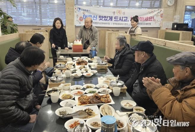 [경기핫타임뉴스=김삼영 기자] 수원시 장안구 연무동은 지난 15일 이교수한정식과 생신을 맞은 저소득 어르신들에게 따뜻한 한 끼를 대접하고 축하의 마음을 전하는 나눔 활동을 진행했다.
