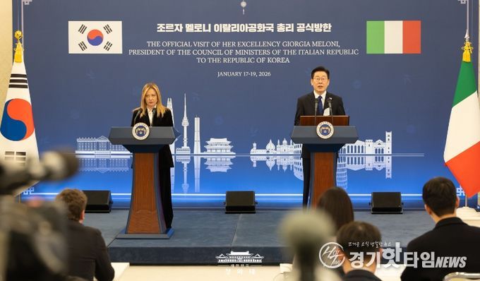 [경기핫타임뉴스=김삼영 기자] 이재명 대통령은 19일 조르자 멜로니 이탈리아 총리와의 정상회담 뒤 "저와 멜로니 총리는 전략적 동반자 명칭에 부합하는 미래지향적 수준으로 양국 관계를 더욱 발전시켜 나가기로 합의했다"고 밝혔다.