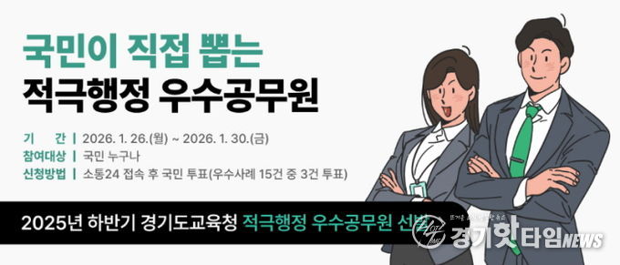 [경기핫타임뉴스=김삼영 기자] 경기도교육청이 공공의 이익을 높인 적극행정 우수공무원 선정을 위해 2025년도 하반기 대국민 심사를 실시한다.