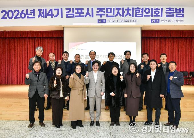 [경기핫타임뉴스=김형철 기자] 2026년 제4기 주민자치협의회가 출범하며 새로운 도약을 알렸다. 김포시는 28일 시청 대회의실에서 14개 읍‧면‧동 4기 주민자치회장으로 구성된 주민자치협의회의 첫 정기회의를 개최하고, 본격적인 4기 주민자치회 운영의 시작을 알렸다.