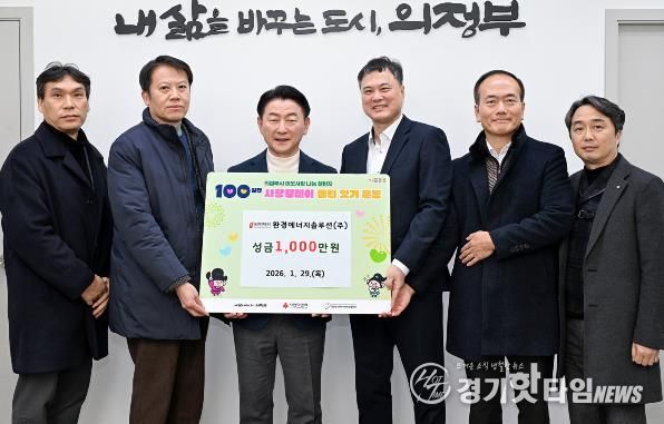 [경기핫타임뉴스=김형철 기자] 의정부시는 1월 29일 의정부시 음식물류폐기물 자원화시설을 운영 중인 환경에너지솔루션(주)이 지역 내 저소득층을 돕기 위해 사회복지공동모금회에 성금 1천만 원을 기부했다고 밝혔다.