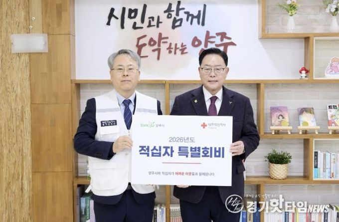 [경기핫타임뉴스=김형철 기자] 양주시가 지난 29일 시장실에서 대한적십자사 경기도지사에 적십자 특별회비 100만 원을 전달했다.