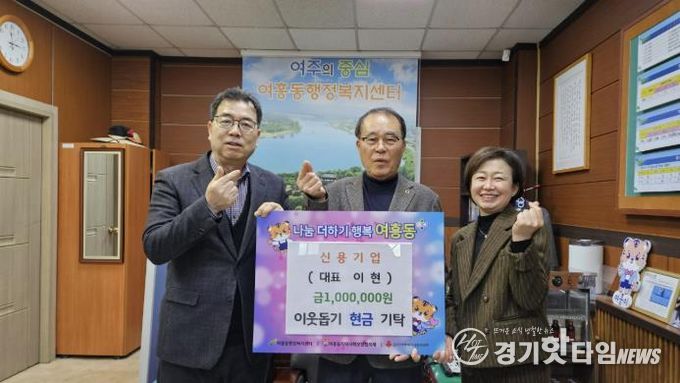 [경기핫타임뉴스=김형철 기자] 여주 신용기업은 지난 30일, 여흥동행정복지센터를 방문해 어려운 이웃을 돕기 위해 성금 100만원을 기탁했다.