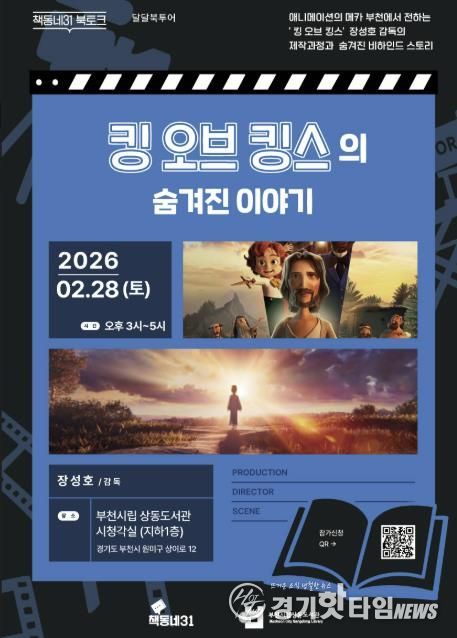 [경기핫타임뉴스=김형철 기자] 부천시는 책동네31과 협력해 오는 2월 28일 오후 3시, 부천시립상동도서관에서 애니메이션 ‘킹 오브 킹스’를 연출한 장성호 감독과 함께하는 ‘책동네31 특별 북토크’를 연다.