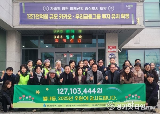 [경기핫타임뉴스=김형철 기자] 남양주시는 별내행정복지센터에서 지난 한 해 동안 지역사회의 적극적인 참여로 모인 후원금과 후원물품이 총 1억 2,710만 원 규모로 집계됐다고 5일 밝혔다.
