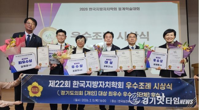 [경기핫타임뉴스=김삼영 기자] 경기도의회가 5일 ‘제22회 한국지방자치학회 우수조례 시상식’에서 개인부문 대상과 단체부문 우수상 등 총 8건을 수상하며 전국 최고의 입법 역량을 입증했다.