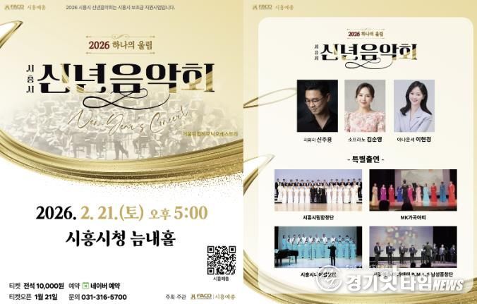 [경기핫타임뉴스=김삼영 기자] 시흥시가 지원하고 (사)한국예술문화단체총연합회 시흥지회에서 주관하는 ‘2026 시흥시 신년음악회- 하나의 울림’이 오는 2월 21일 오후 5시, 시청 늠내홀에서 개최된다.