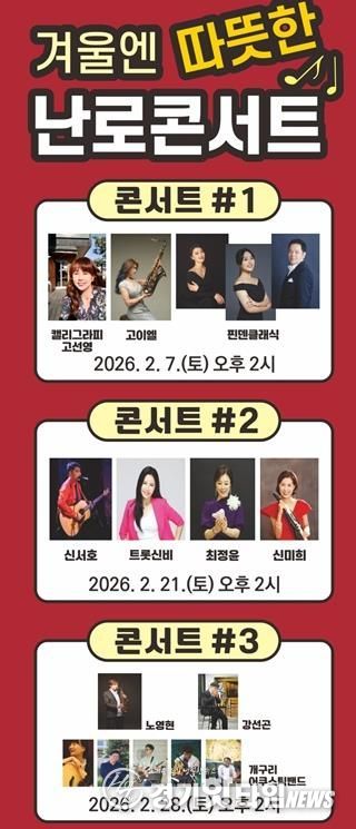 이번 공연은 2월 한 달간 총 3회(2월 7일, 21일, 28일)에 걸쳐 오후 2시부터 3시까지 진행된다. 매회 색소폰, 성악, 오카리나, 트로트 등 다양한 장르의 공연이 펼쳐질 예정이다.
