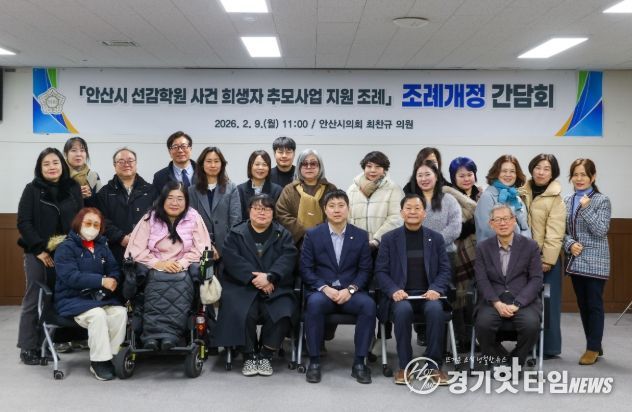 [경기핫타임뉴스=김삼영 기자] 안산시의회 최찬규 의원은 2월 9일 안산시의회 3층 대회의실에서 ‘안산시 선감학원 사건 희생자 추모사업 지원 조례’ 일부개정을 위한 간담회를 개최했다.