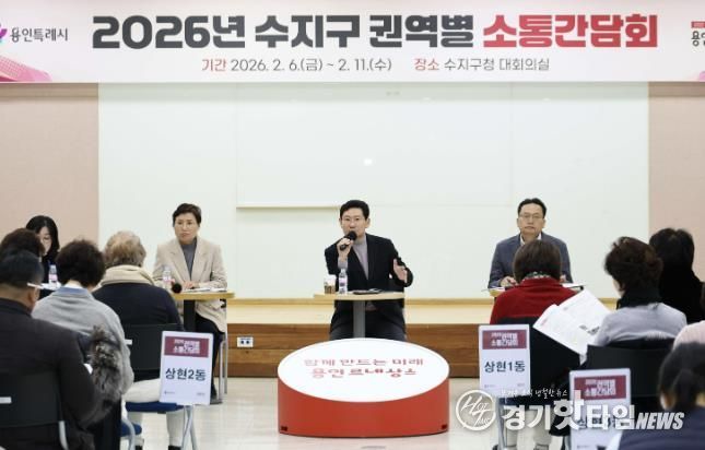[경기핫타임뉴스=김삼영 기자] 이상일 시장은 9일 수지구청 대회의실에서 오전·오후로 나눠 상현1·2·3동과 신봉·성복동 주민들을 대상으로 권역별 소통간담회를 열고, 주민 대표 80여 명과 지역 현안에 대해 의견을 나눴다.