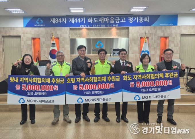 [경기핫타임뉴스=김형철 기자] 남양주시는 10일 화도새마을금고가 개최한 정기 총회에서 관내 어려운 이웃을 위한 후원금 1,500만 원을 화도읍 지역사회보장협의체와 평내동·호평동 지역사회보장협의체에 전달했다고 밝혔다.