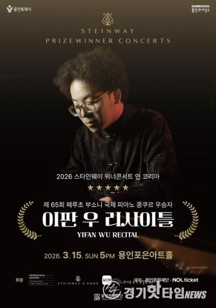 [경기핫타임뉴스=김삼영 기자] 용인문화재단은 오는 3월 15일 오후 5시, 용인포은아트홀에서 ‘2026 스타인웨이 위너콘서트 – 이판 우 리사이틀’을 개최한다고 밝혔다.
