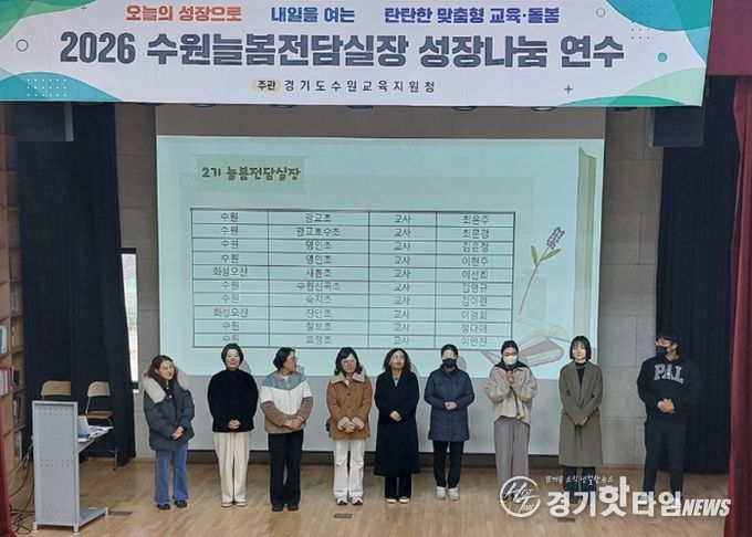 [경기핫타임뉴스=김삼영 기자] 경기도수원교육지원청은 2월 12일 경기상상캠퍼스 교육1964 컨퍼런스홀에서 2026학년도 방과후·돌봄 정책의 안정적 현장 안착을 위한 '수원 늘봄전담실장 OT 및 1, 2기 공동 성장나눔연수'를 운영한다. 이번 연수는 신규 임용된 2기 늘봄전담실장의 업무 적응을 지원하는 동시에 늘봄전담실장 전체가 2026 방과후·돌봄 정책의 철학과 방향을 함께 성찰하고 실행 역량을 높이기 위해 마련됐다.