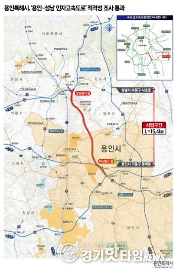 [경기핫타임뉴스=김삼영 기자] 용인특례시는 ‘용인~성남 고속도로 민간투자사업’이 한국개발연구원(KDI) 적격성 조사를 통과했다고 13일 밝혔다.