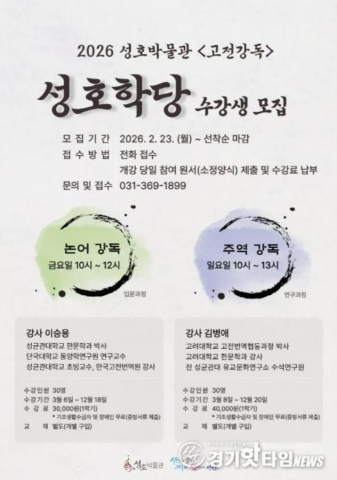 수강 신청은 오는 23일부터 전화로 선착순 접수하며, 자세한 사항은 성호박물관 누리집에서 확인할 수 있다.