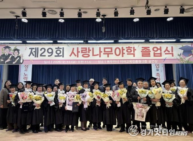 [경기핫타임뉴스=김형철 기자] 동두천시 사랑나무야학은 미래교육진흥원 한울림공연장에서 2025학년도 제29회 졸업식을 개최하고, 초·중 학력 인정 과정 수료자와 고졸 검정고시 합격생에게 졸업장과 상장을 수여했다.