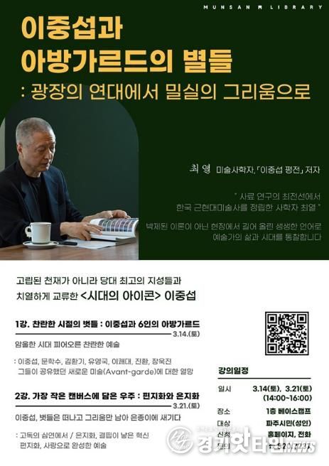 문산도서관 관계자는 “이번 미술사 강연은 단순히 그림을 감상하는 것을 넘어, 한 예술가의 삶을 통해 한국 근현대사를 관통하는 지적 호기심과 정서적 감동을 동시에 느낄 수 있는 기회가 될 것”이라고 전했다.