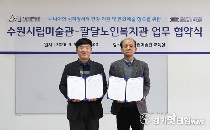 [경기핫타임뉴스=김삼영 기자] 경기도 수원시립미술관과 수원시 팔달노인복지관은 5일 관내 시니어의 문화예술 향유 활성화를 위한 업무협약을 체결했다.