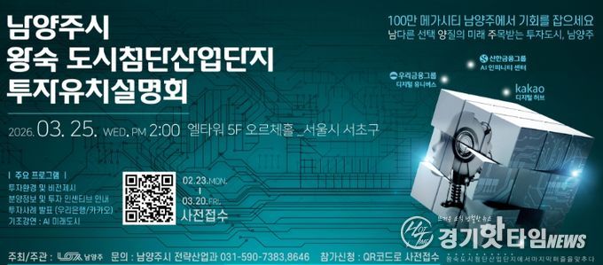 시 관계자는 “이번 설명회는 남양주시의 매력적인 투자환경과 실제 투자 성공 사례를 직접 확인할 수 있는 자리”라며 “관심 있는 기업들의 많은 참여를 기대한다”고 밝혔다.