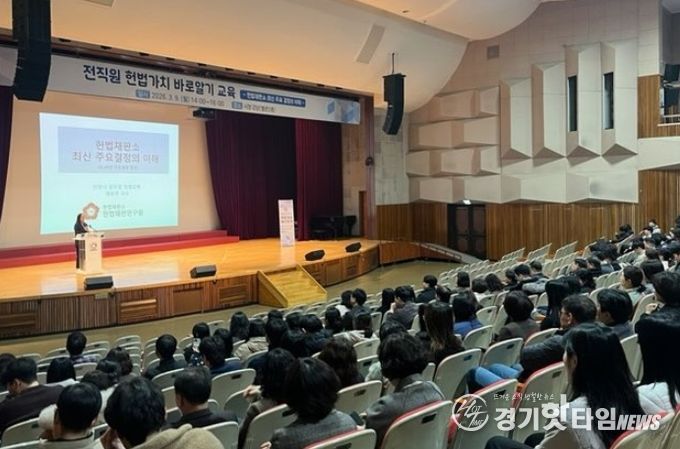[경기핫타임뉴스=김삼영 기자] 안양시는 9일 오후 2시 소속 공무원들을 대상으로 예승연 헌법재판소 헌법재판연구원 교수를 초빙해 ‘헌법가치 바로 알기’ 교육을 실시했다.