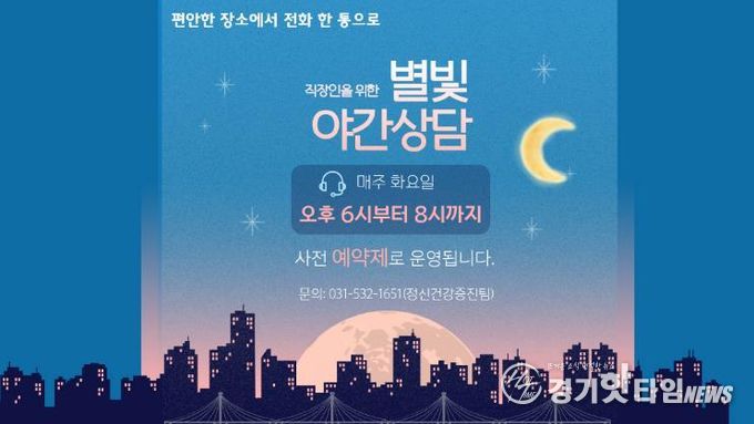 [경기핫타임뉴스=김형철 기자] 포천시정신건강복지센터는 직장인, 학생, 취업 준비생 등 낮 시간 상담 이용이 어려운 시민들이 보다 편리하게 마음건강 상담을 받을 수 있도록 ‘야간 마음건강 상담서비스(별빛 야간 상담)’를 운영한다.