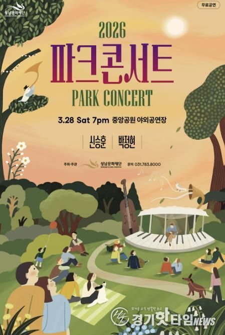 도심 속 자연과 어우러진 야외무대에서 세대와 장르를 아우르며 성남의 대표 야외 공연으로 자리 잡은 ‘파크콘서트’는 오는 3월 28일 오후 7시, 중앙공원 야외공연장에서 그 첫 무대를 연다.