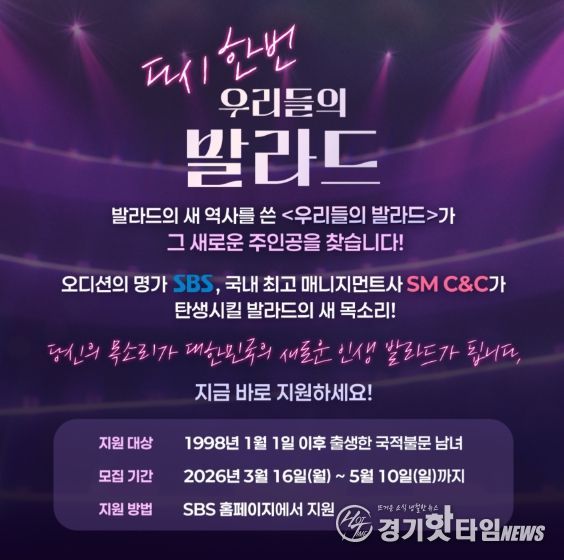 [경기핫타임뉴스=김삼영 기자] 시즌2로 돌아오는 SBS ‘우리들의 발라드’가 발라드 신화를 이을 새로운 목소리를 찾는다.
