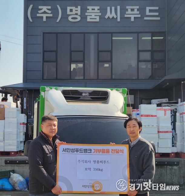 서안성푸드뱅크 박찬수 대표는 “지역의 어려운 이웃들을 위해 귀한 식품을 기부해주신 명품씨푸드에 깊이 감사드린다.”며 “기부해주신 냉동 꼬막은 필요한 이웃들에게 소중히 전달해 지역사회 나눔 문화 확산에 더욱 힘쓰겠다.”고 말했다.