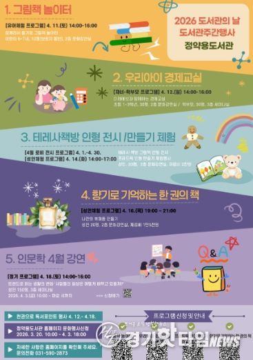 [경기핫타임뉴스=김형철 기자] 남양주시는 ‘2026년 도서관의 날·도서관주간’을 맞아 정약용도서관에서 4월 한 달간 전시와 체험, 강연 등 다양한 독서문화 프로그램을 운영한다고 18일 밝혔다.