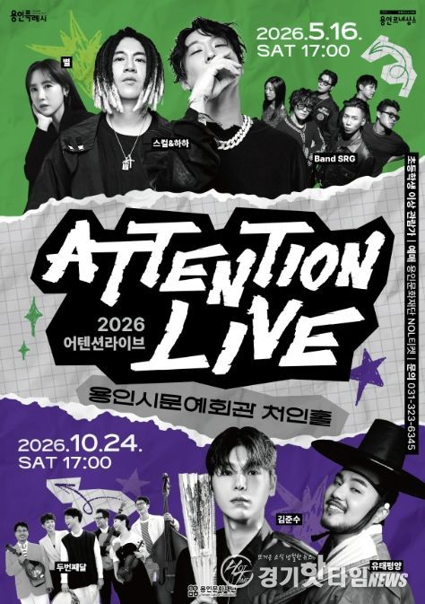 [경기핫타임뉴스=김삼영 기자] 용인문화재단은 용인시문예회관 처인홀에서 청년층을 주요 대상으로 한 라이브 공연 브랜드 '2026 어텐션 라이브'를 상·하반기 두 차례에 걸쳐 개최한다.