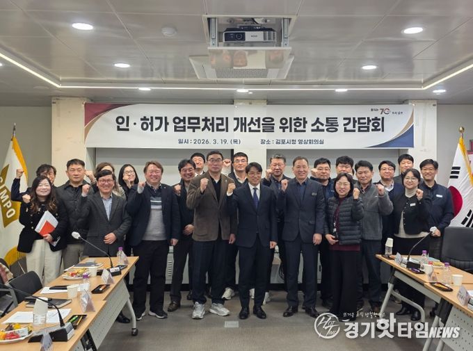 [경기핫타임뉴스=김형철 기자] 김포시는 지난 3월 19일 김포시청 영상회의실에서 ‘인허가 업무처리 개선을 위한 소통 간담회’를 개최해 인허가 절차 간소화 및 처리기간 단축 등 방안을 논의하는 시간을 가졌다.