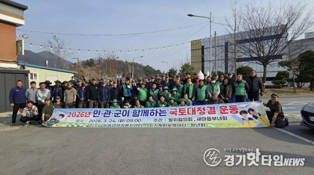 [경기핫타임뉴스=김형철 기자] 포천시 일동면 행정복지센터는 지난 24일 봄을 맞아 마을안길과 도로변 일원에서 민관군이 함께하는 국토대청소를 실시했다.